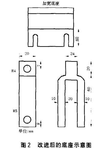 在維修工作中,常發(fā)現(xiàn)三相E型剎車(chē)電磁鐵變形,原因是電磁鐵動(dòng)鐵芯經(jīng)常受到?jīng)_擊, 使動(dòng)鐵芯與靜鐵芯接觸面被撞大,造成動(dòng)鐵芯的活動(dòng)導(dǎo)軌面受到磨損。一旦卡角動(dòng)鐵芯與靜鐵芯吻合面不能很好地接觸,電磁鐵內(nèi)部將形成較大磁阻,引起線圈產(chǎn)生足以使線圈發(fā)熱燒毀的電流,致使電磁鐵線圈燒毀。當(dāng)3個(gè)線圈中任意1個(gè)燒毀,電磁鐵吸引力平衡被破壞,另外2個(gè)也就很快跟著燒毀,只好將3個(gè)線圈同時(shí)換掉。這種電磁鐵在 設(shè)計(jì)時(shí)因考慮到簡(jiǎn)潔,動(dòng)鐵芯與制動(dòng)拉桿之間只有一根連桿,極易造成動(dòng)鐵芯的不平衡使鐵芯被卡住,致使制動(dòng)電磁鐵線圈發(fā)熱燒毀。在易燃易爆場(chǎng)所更換線圈時(shí),必須裝上防爆裝置才能試車(chē),這時(shí)無(wú)法觀察到鐵芯的動(dòng)作情況,常常造成返工。為了克服電磁鐵線圈經(jīng)常燒毀的問(wèn)題,經(jīng)過(guò)仔細(xì)觀察發(fā)現(xiàn),如果將制動(dòng)剎車(chē)調(diào)節(jié)到佳狀態(tài)時(shí),制動(dòng)拉桿的力約在68.6—78.4N之間,完全可以用MQI-513型、吸引力為78.4N、行程為25em的牽引電磁鐵來(lái)代替原有的三相式E型電磁鐵。按圖1先將原來(lái)固定三相電磁鐵的底座加寬6ocm,然后按電磁鐵底板的尺寸鉆孔,把電磁鐵倒裝上去。為防止電磁鐵的活動(dòng)鐵芯超行程滑脫出來(lái)在牽引電磁鐵活動(dòng)鐵芯與制動(dòng)器連桿之間,按圖2的尺寸重做一個(gè)。固定好電磁鐵后就可以把連桿與動(dòng)鐵芯用鋼梢固牢。