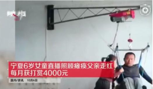 日前看到網(wǎng)絡(luò)上這樣篇文章,是6歲女童直播照顧癱瘓父親,依靠每月四千打賞生活,這是一個(gè)堅(jiān)強(qiáng)的故事,讓我們來(lái)回顧一下這個(gè)事情的原委: