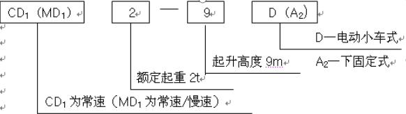 CD1 2-9D代表的是CD1型2噸9米運行式(電動小車式)電動葫蘆