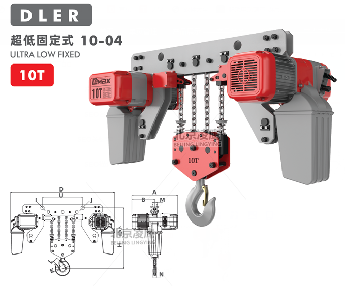 10噸DLER環(huán)鏈電動葫蘆超低固定式采用進(jìn)口FEC/G80超強(qiáng)熱處理合金鋼鏈條。